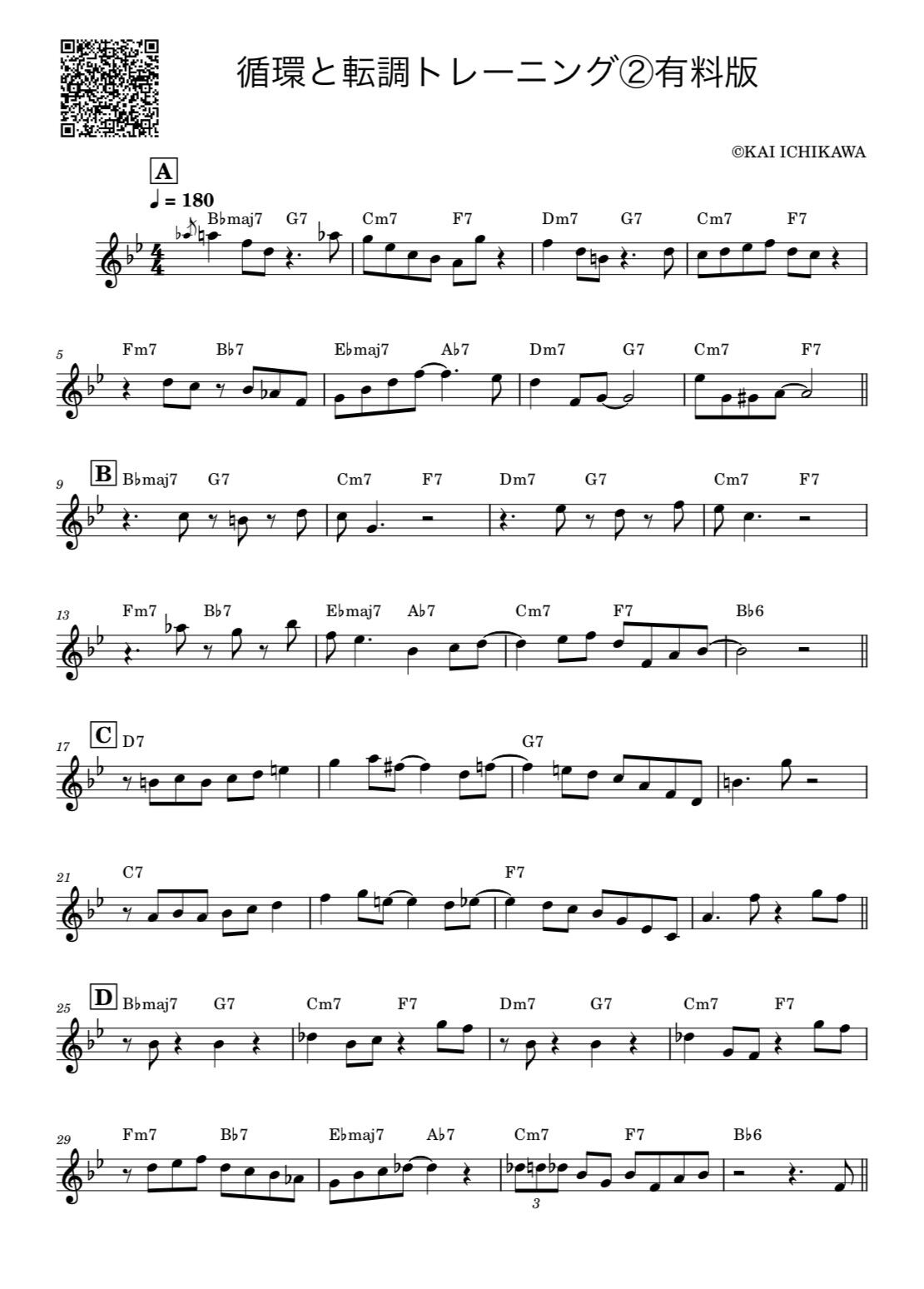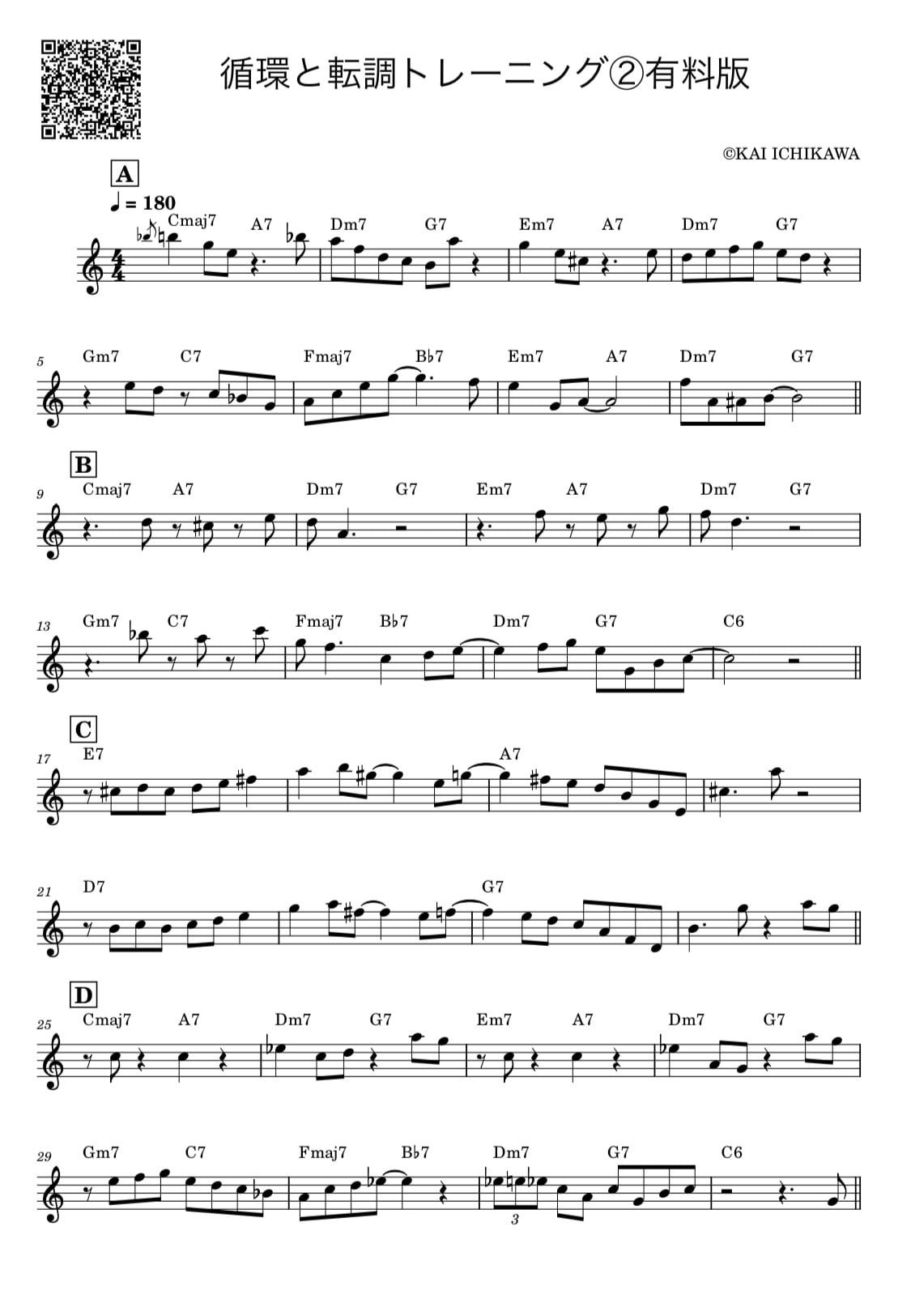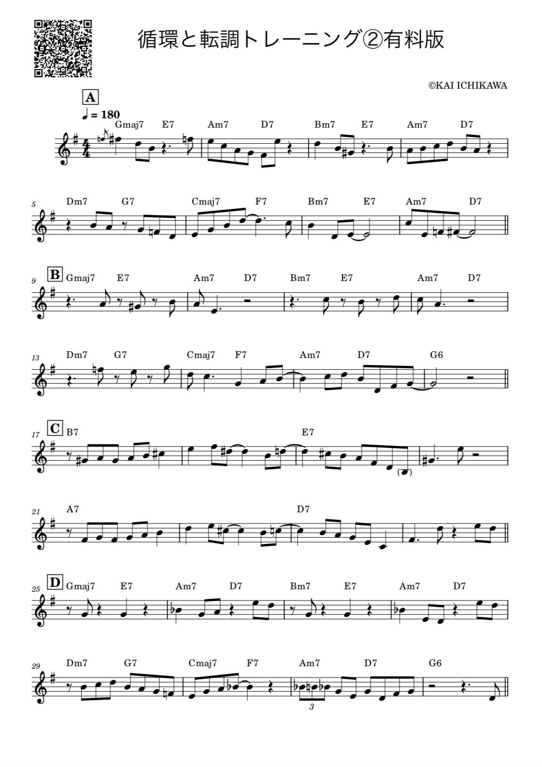 動画「循環と転調トレーニング②」の練習用楽譜有料版です。