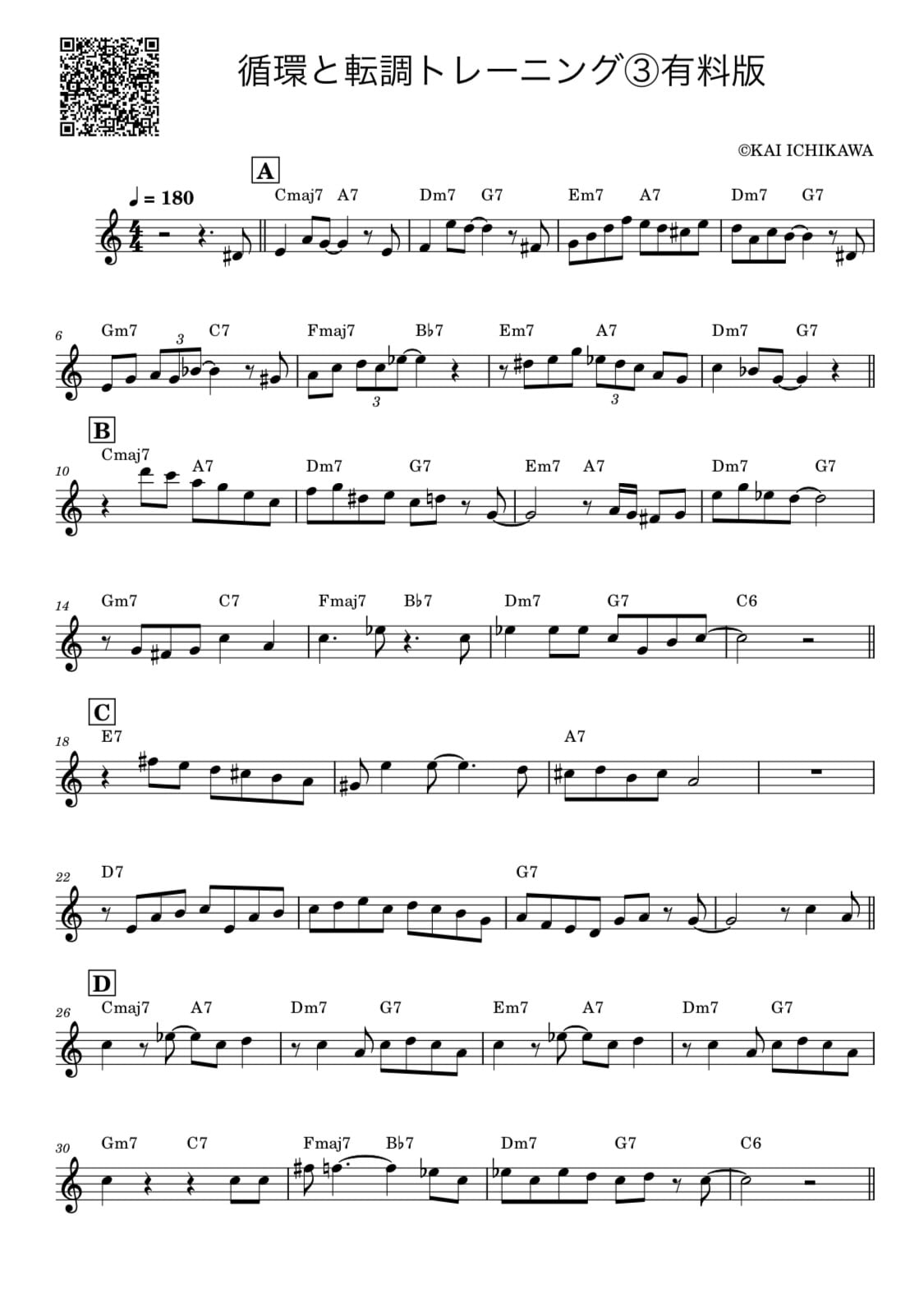 動画「循環と転調トレーニング③」の練習用楽譜有料版です。